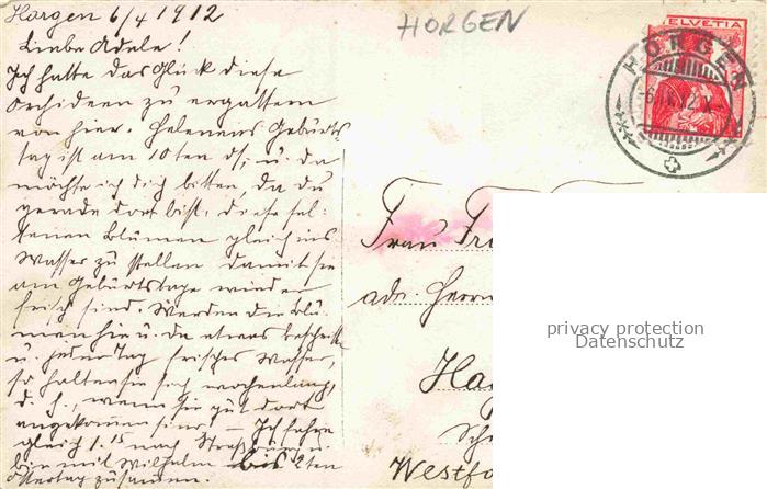 34143989 alte Postkarte HORGEN ZH Frau mit Bernhardiner postalisch gelaufen Erhaltung siehe scans [WerneD78] KatCode: 11470260890322