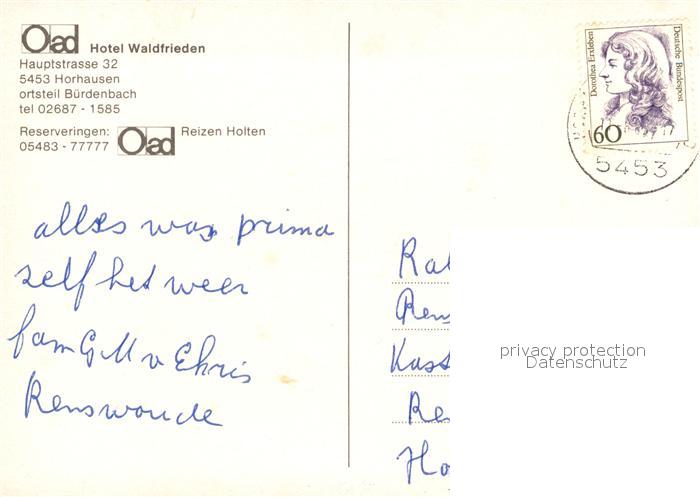 73311791 alte Postkarte Horhausen Rhein-Lahn-Kreis Hotel Waldfrieden postalisch gelaufen Erhaltung siehe scans [LiesaD40] KatCode: 11110007141062