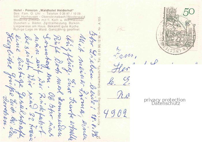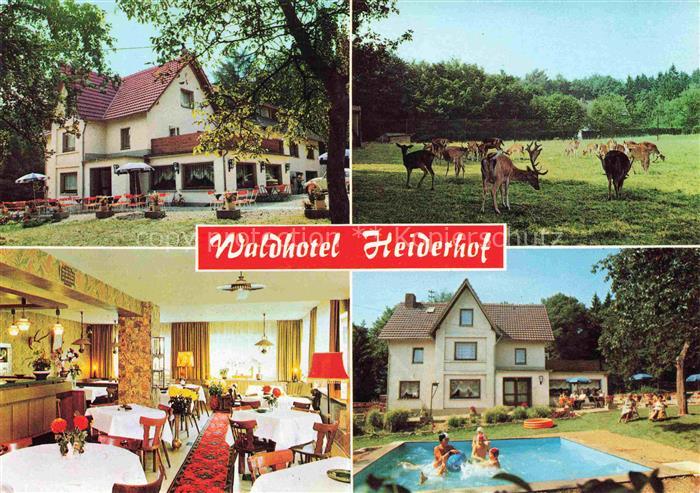 74126041 alte Postkarte Horhausen Westerwald Altenkirchen Rheinland-Pfalz Waldhotel Heiderhof Gastraum Pool Wildgehege postalisch gelaufen Erhaltung siehe scans [WerneD78] KatCode: 11110007132055