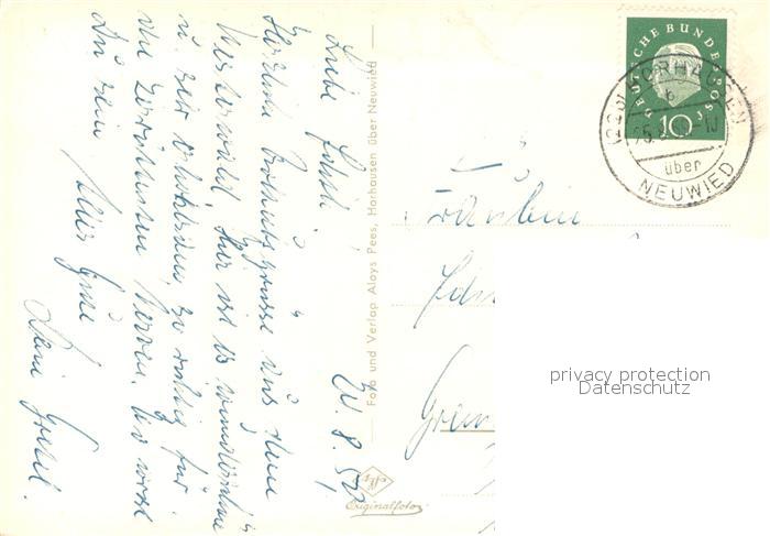 73718829 alte Postkarte Horhausen Westerwald Landschaftspanorama Wiedtal Pfarrkirche Grenzbachtal Muehle postalisch gelaufen Erhaltung siehe scans [FriedD77] KatCode: 11110007132055
