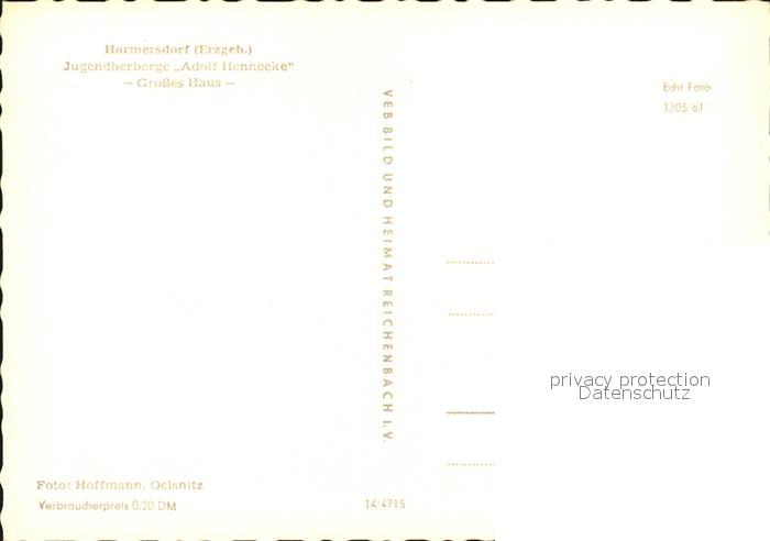 72473848 Hormersdorf Erzgebirge Jugendherberge Adolf Hennecke postalisch nicht gelaufen Erhaltung siehe scans KatCode: 11110014188110