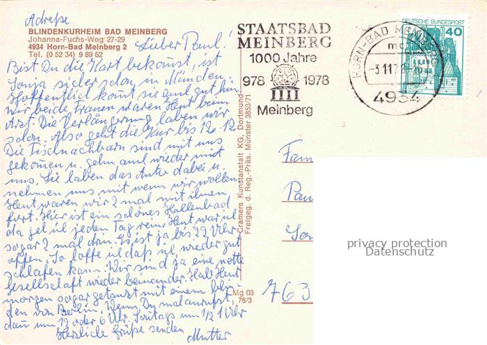 74084734 alte Postkarte Horn-Bad Meinberg Blindenkurheim Bad Meinberg postalisch gelaufen Fliegeraufnahme Erhaltung siehe scans [WerneD78] KatCode: 11110005766032