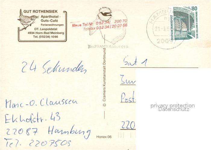 73654935 alte Postkarte Horn-Bad Meinberg Gutshof Gut Rothensiek Wohnparadies Guts Cafe Theke Wanderparadies postalisch gelaufen Erhaltung siehe scans [WerneD78] KatCode: 11110005766032