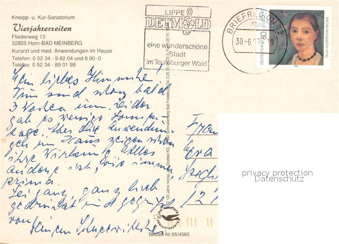 73650665 alte Postkarte Horn-Bad Meinberg Kneipp- und Kursanatorium Vierjahreszeiten postalisch gelaufen Erhaltung siehe scans [FriedD77] KatCode: 11110005766032