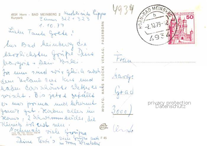 72880207 alte Postkarte Horn-Bad Meinberg Kurpark Fliegeraufnahme postalisch gelaufen Erhaltung siehe scans [FriedD77] KatCode: 11110005766032