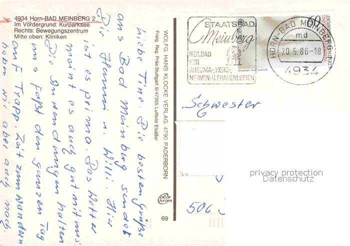 72902609 alte Postkarte Horn-Bad Meinberg Kurparksee Bewegungszentrum Kliniken Fliegeraufnahme postalisch gelaufen Erhaltung siehe scans [FriedD77] KatCode: 11110005766032