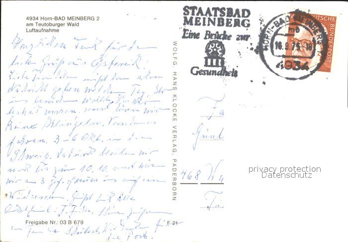 72542619 alte Postkarte Horn-Bad Meinberg Luftaufnahme postalisch gelaufen Erhaltung siehe scans [KathaD75 kv015box] KatCode: 11110005766032