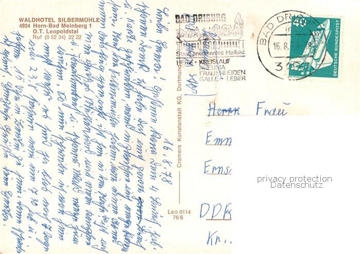 73766771 alte Postkarte Horn-Bad Meinberg Waldhotel Silbermuehle postalisch gelaufen Erhaltung siehe scans [FriedD77] KatCode: 11110005766032
