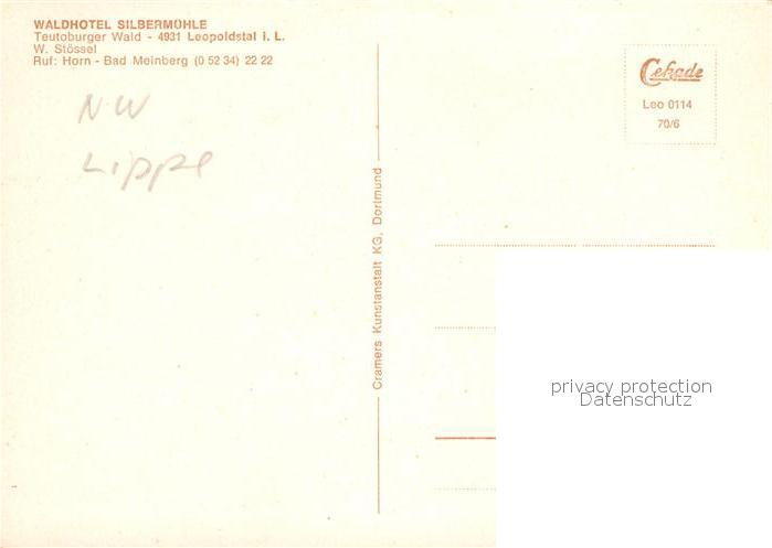 73019394 Horn-Bad Meinberg Waldhotel Silbermuehle postalisch nicht gelaufen Erhaltung siehe scans [NatalD47] KatCode: 11110005766032