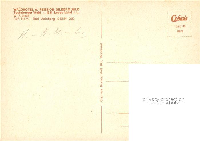 73015208 Horn-Bad Meinberg Waldhotel Silbermuehle postalisch nicht gelaufen Erhaltung siehe scans [NatalD47] KatCode: 11110005766032