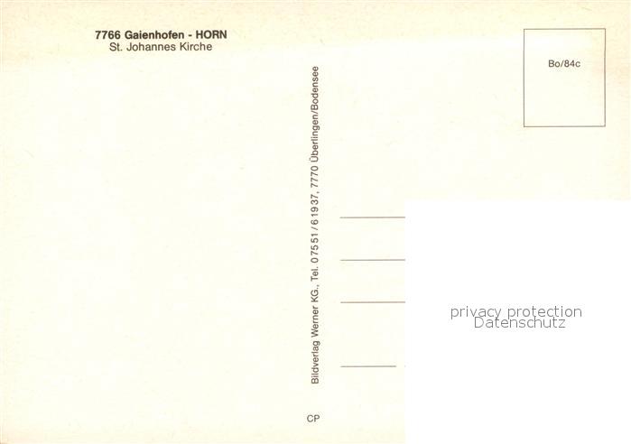 73212716 Horn Gaienhofen St Johannes Kirche postalisch nicht gelaufen Erhaltung siehe scans [WerneD78] KatCode: 11110008335025