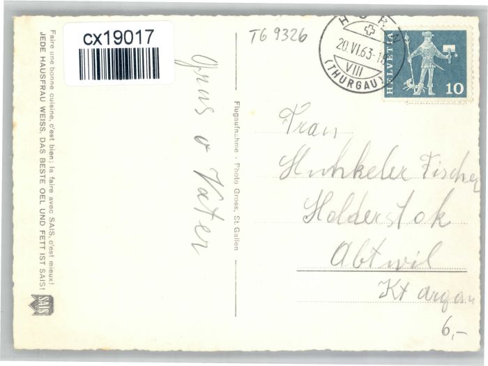 10724497 alte Postkarte Horn Huileries Sais Fliegeraufnahme postalisch gelaufen KatCode: