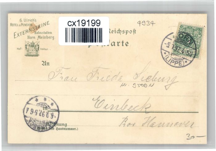 30727911 alte Postkarte Horn Lippe Hotel Pension Externstein postalisch gelaufen KatCode: 11110005766032