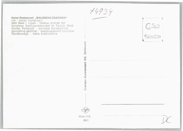 40681020 Horn Lippe Hotel Restaurant Waldschlösschen KatCode 11110005766032