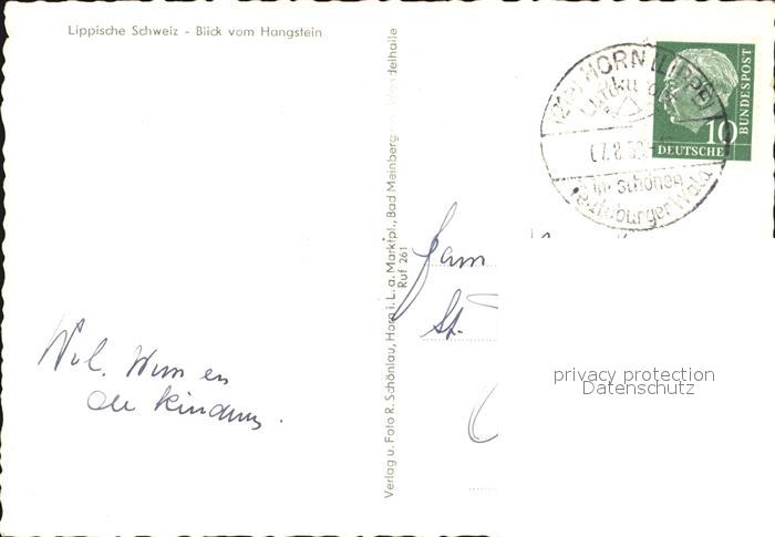 72403610 alte Postkarte Horn Lippe Lippische Schweiz Blick vom Hangstein postalisch gelaufen Erhaltung siehe scans KatCode: 11110005766032