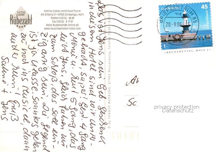 73862275 alte Postkarte Horn Schwangau Bayern Hotel Ruebezahl Bayerische Alpen postalisch gelaufen Erhaltung siehe scans [FriedD77] KatCode: 11110009777169