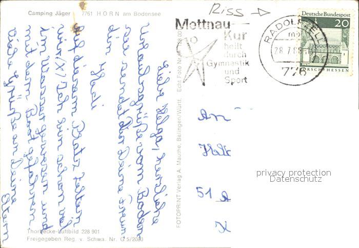 72190490 alte Postkarte Horn Untersee Camping Horn Fliegeraufnahme postalisch gelaufen Erhaltung siehe scans KatCode: 11110008335055