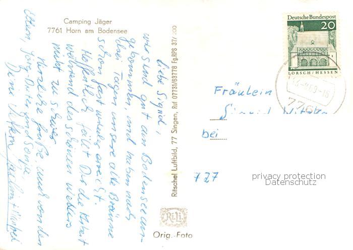 73850278 alte Postkarte Horn Untersee Camping Jaeger Fliegeraufnahme postalisch gelaufen Erhaltung siehe scans [WerneD78] KatCode: 11110008335055