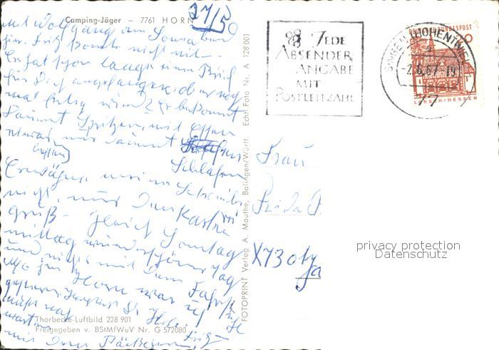 72058429 alte Postkarte Horn Untersee Camping Jaeger postalisch gelaufen Erhaltung siehe scans KatCode: 11110008335055