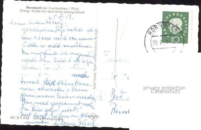 72145376 alte Postkarte Hornbach Zweibruecken Kirche mit Schule postalisch gelaufen Erhaltung siehe scans KatCode: 11110007320000