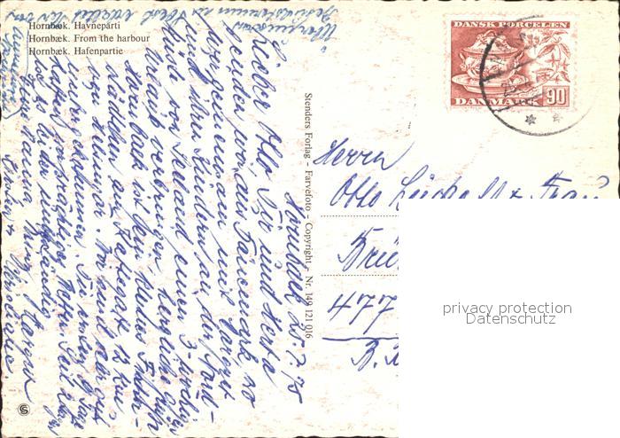 old postcard Hornbaek Hafenpartie postalisch gelaufen Erhaltung siehe scans
