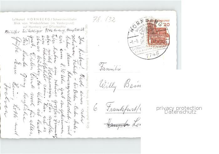 71985735 alte Postkarte Hornberg Schwarzwald Blick vom Windeckfelsen bis Offenbachtal Luftkurort postalisch gelaufen Erhaltung siehe scans KatCode: 11110008317051