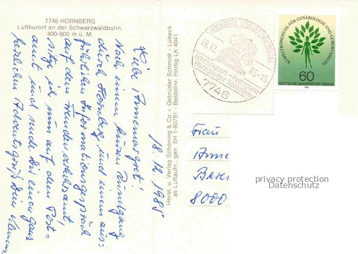 74157705 alte Postkarte Hornberg Schwarzwald BW Fliegeraufnahme Viadukt Schwarzwaldbahn Wald Tal Turm Luftkurort Luftbild postalisch gelaufen Fliegeraufnahme Erhaltung siehe scans [Karloger] KatCode: 11110008317051