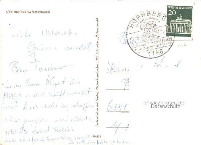 72610505 alte Postkarte Hornberg Schwarzwald Gesamtansicht Brunnen Park Weiher postalisch gelaufen Erhaltung siehe scans [AndreD76] KatCode: 11110008317051