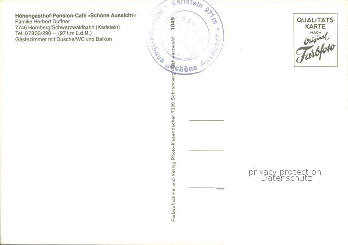 71830654 Hornberg Schwarzwald Hoehengasthof-Pension-Cafe Schoene Aussicht postalisch nicht gelaufen Erhaltung siehe scans KatCode: 11110008317051