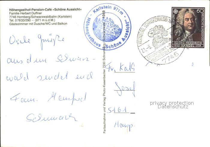 alte Postkarte Hornberg Schwarzwald Hoehengasthof Pension Cafe Schoene Aussicht postalisch gelaufen Erhaltung siehe scans