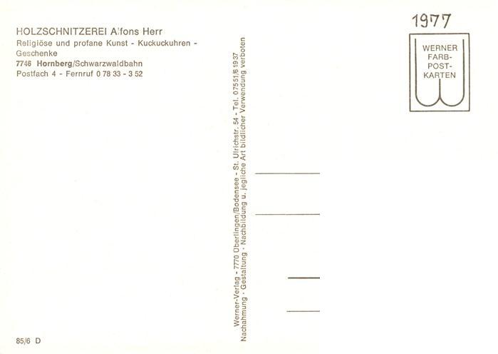 73892271 Hornberg Schwarzwald Holzschnitzerei Alfons Herr Profane Kunst Schwarzwaldbahn postalisch nicht gelaufen Erhaltung siehe scans [WerneD78] KatCode: 11110008317051