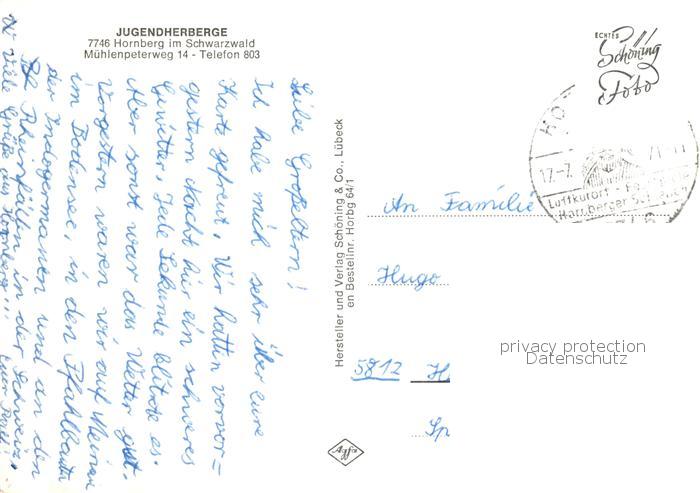 73862330 alte Postkarte Hornberg Schwarzwald Jugendherberge postalisch gelaufen Erhaltung siehe scans [FriedD77] KatCode: 11110008317051