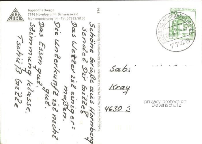 71984109 alte Postkarte Hornberg Schwarzwald Jugendherberge postalisch gelaufen Erhaltung siehe scans KatCode: 11110008317051