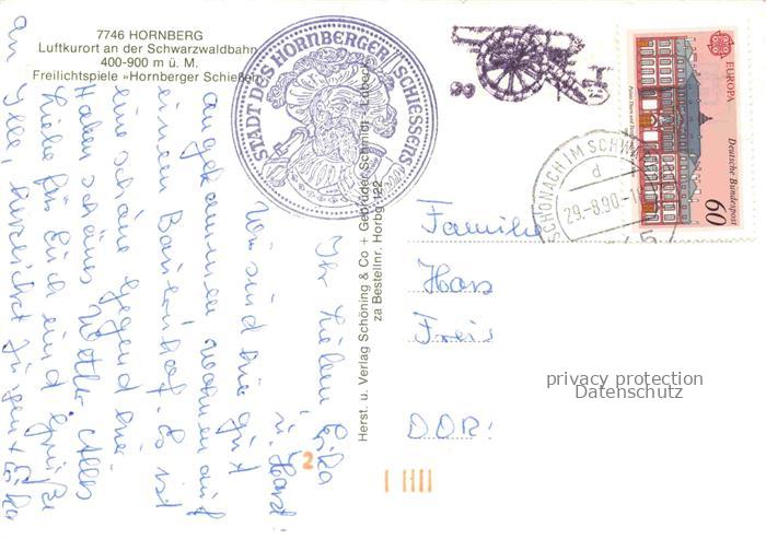 74039794 alte Postkarte Hornberg Schwarzwald Luftkurort an der Schwarzwaldbahn Freilichtspiele Hornberger Schiessen postalisch gelaufen Erhaltung siehe scans [FriedD77] KatCode: 11110008317051