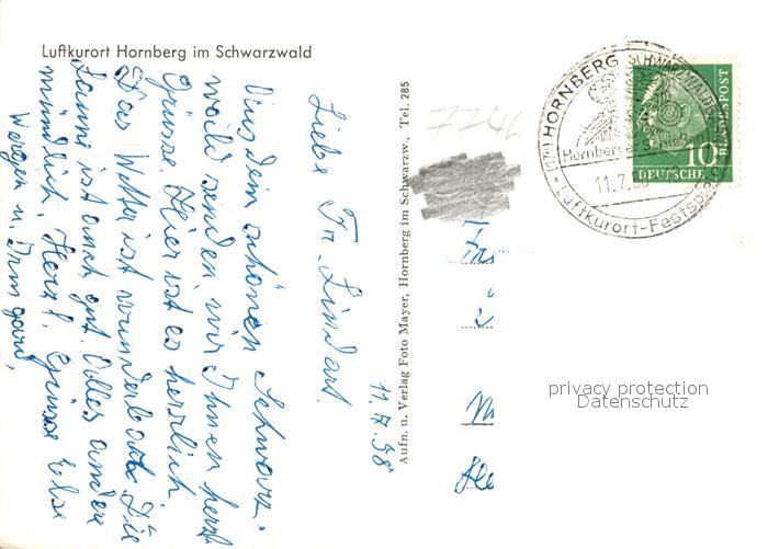 73142057 alte Postkarte Hornberg Schwarzwald Panorama Luftkurort Trachten Bollenhut postalisch gelaufen Erhaltung siehe scans [FriedD77] KatCode: 11110008317051