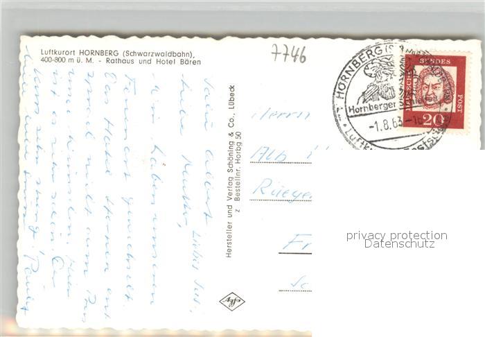 43291068 alte Postkarte Hornberg Schwarzwald Rathaus Hotel Baeren postalisch gelaufen Erhaltung siehe scans [KathaD81] KatCode: 11110008317051