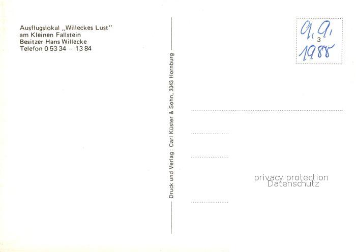 73211750 Hornburg Eisleben Ausflugslokal Willeckes Lust am Kleinen Fallstein Panorama postalisch nicht gelaufen Erhaltung siehe scans [WerneD78] KatCode: 11110015087230