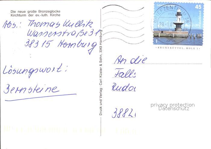 71928752 alte Postkarte Hornburg Wolfenbuettel Bronzeglocke Kirchturm ev luth Kirche postalisch gelaufen Erhaltung siehe scans KatCode: 11110003158020