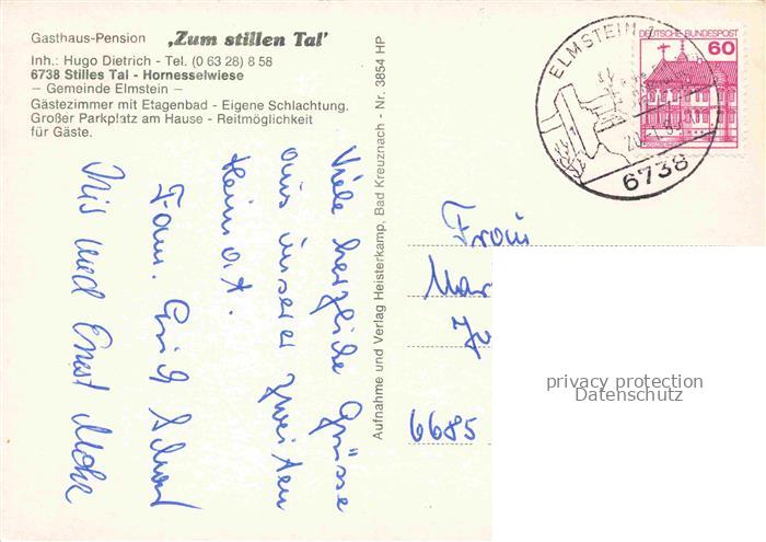 74042357 alte Postkarte Hornesselwiese Gasthaus Pension Zum stillen Tal Gastraeume Panorama postalisch gelaufen Erhaltung siehe scans [WerneD78] KatCode: 11110007332014