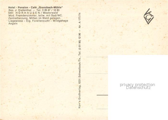 73641779 Hornhausen Hotel Pension Cafe Grenzbach Muehle postalisch nicht gelaufen Erhaltung siehe scans [FriedD77] KatCode: 11110015083310