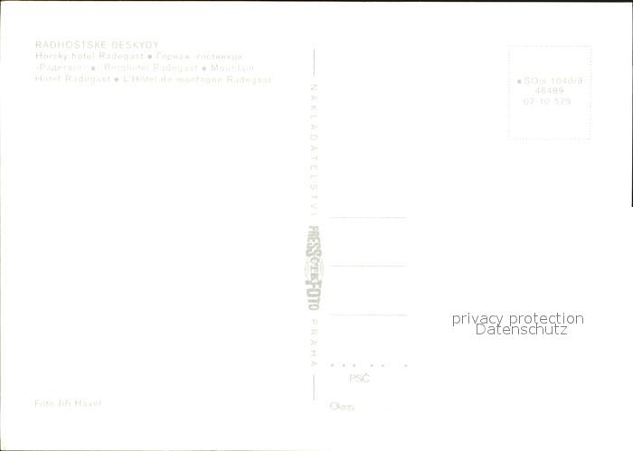 Horni Becva Horsky Hotel Radegast Radhostske Beskydy postalisch nicht gelaufen Erhaltung siehe scans