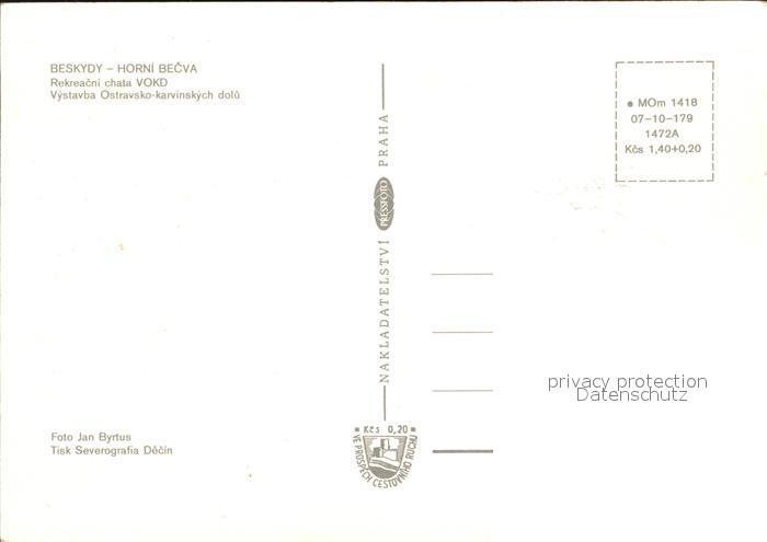 Horni Becva Rekreacni chata VOKD Vystavba Ostrvsko karvinskych dolu postalisch nicht gelaufen Erhaltung siehe scans