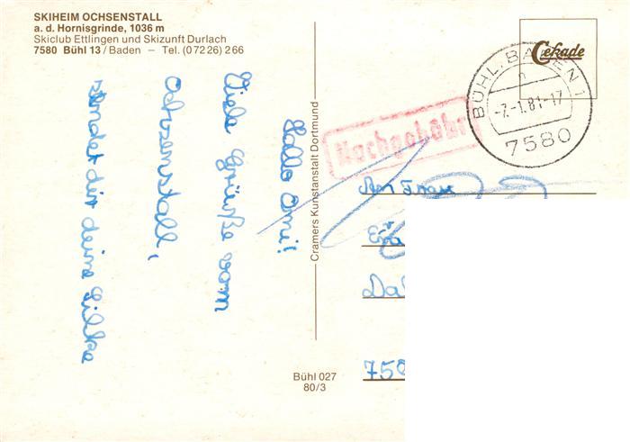 73932713 alte Postkarte Hornisgrinde Sasbach Skiheim Ochsenstall mit Fernsehturm Gastraum Kueche postalisch gelaufen Erhaltung siehe scans [WerneD78] KatCode: 11110008317116