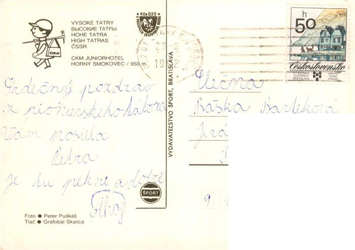 old postcard Horny Smokovec Vysoke Tatry SK CKM Juniorhotel postalisch gelaufen Erhaltung siehe scans [FriedD77]