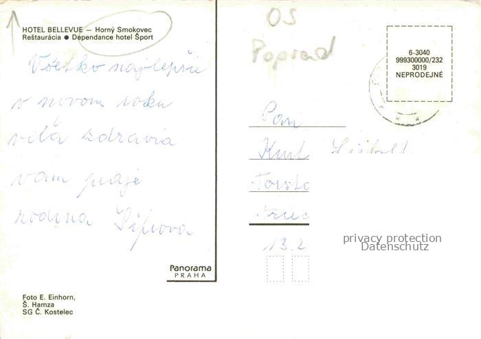 74156415 Horny Smokovec Vysoke Tatry SK Hotel-Bellevue Restaurant Hochhaus Wald Interhotel Hochgebirge Dependance-Sport postalisch nicht gelaufen Erhaltung siehe scans [Karloger] KatCode: 11490