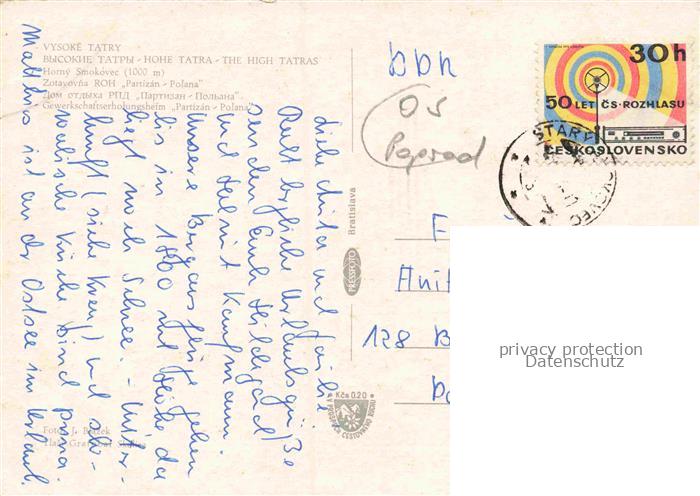 74156418 old postcard Horny Smokovec Vysoke Tatry SK Zotavovna-ROH Sanatorium Partizán-Poľana Wald Hochgebirge Vysoke-Tatry Villa Kuren postalisch gelaufen Erhaltung siehe scans [Karloger] KatCode: 11490
