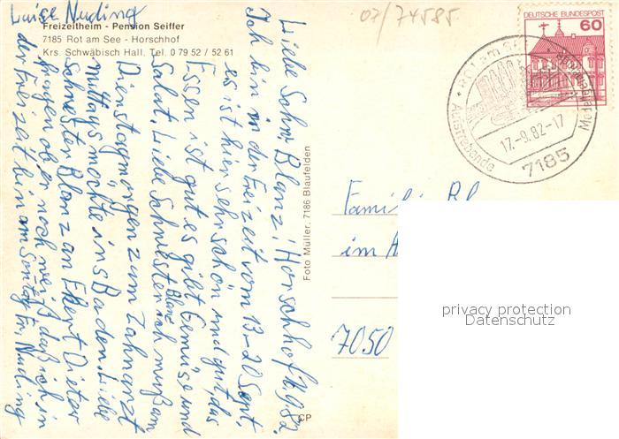 73704553 alte Postkarte Horschhof Rot am See Freizeitheim Pension Seiffer Innenraeume Landschaftspanorama postalisch gelaufen Erhaltung siehe scans [FriedD77] KatCode: 11110008127071