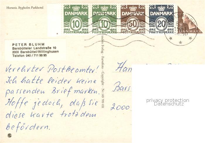 old postcard Horsens DK Bygholm Parkhotel postalisch gelaufen Erhaltung siehe scans [WerneD78]