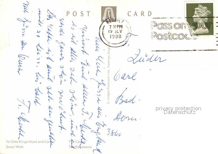 old postcard Horsham West Sussex Rathaus Strasse Kirche postalisch gelaufen Erhaltung siehe scans [AndreD76]
