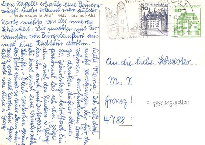 72987280 alte Postkarte Horstmar Westfalen Friedenskapelle Alst postalisch gelaufen Erhaltung siehe scans [WerneD78] KatCode: 11110005566024